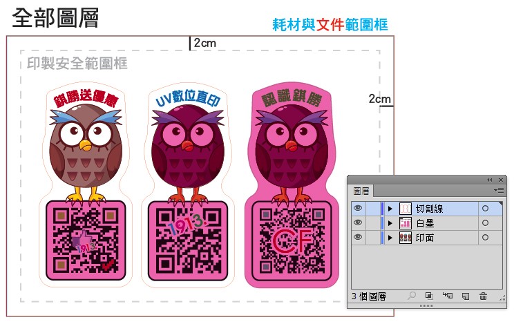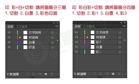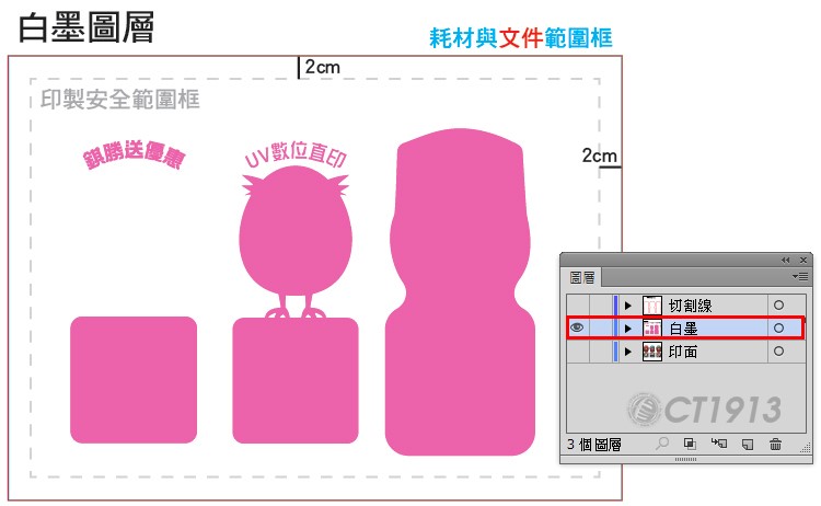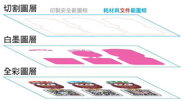 UV數位直印的白墨及線稿檔製作為同位置製檔,故採用圖層製作。
