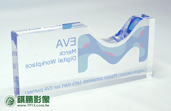 詳細說明:設計師考量獎座可直接站立擺放的便利性,特地選用25mm的厚度成形後再搭配UV數位直印,不僅可少量製作,更可以全彩噴印唷!如果每個獎項想要更具獨特性也可將得獎人的名字一起彩印。數量不限,一件即可印!